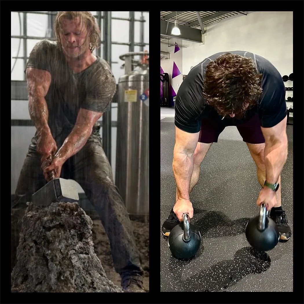 This is Chris - mid-40s, works hard, trains hard, and knows what it feels like to start again after an injury, well actually that is Chris Hemsworth in Thor but the guy with bigger forearms next to him… that is my client Chris.